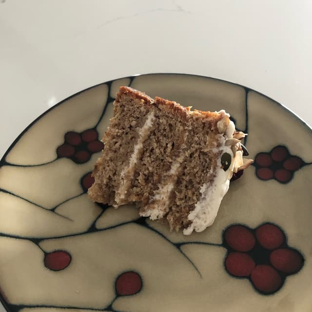 Lovely cake. It’s a bit sweeter than I would prefer it, though. There is more than enough icing on the cake and in between the layers. The sponge is soft.