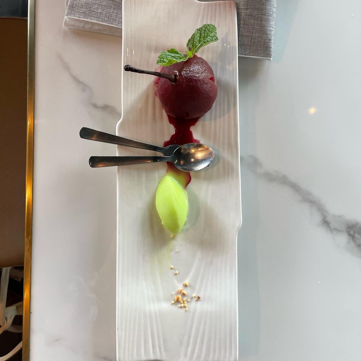 I expected the pear to be softer but it’s more crisp; the lime sorbet was way too sweet for me but my mom liked it. Overall it was an ok dish for me