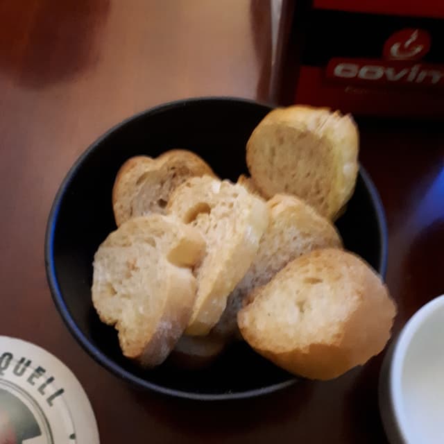 Crostini che in questo caso erano da intingere in una sorta di salsa tonnata, io li ho mangiati asciutti, e risultano un pochino stopposi. Ma il gusto è buono e sono croccanti