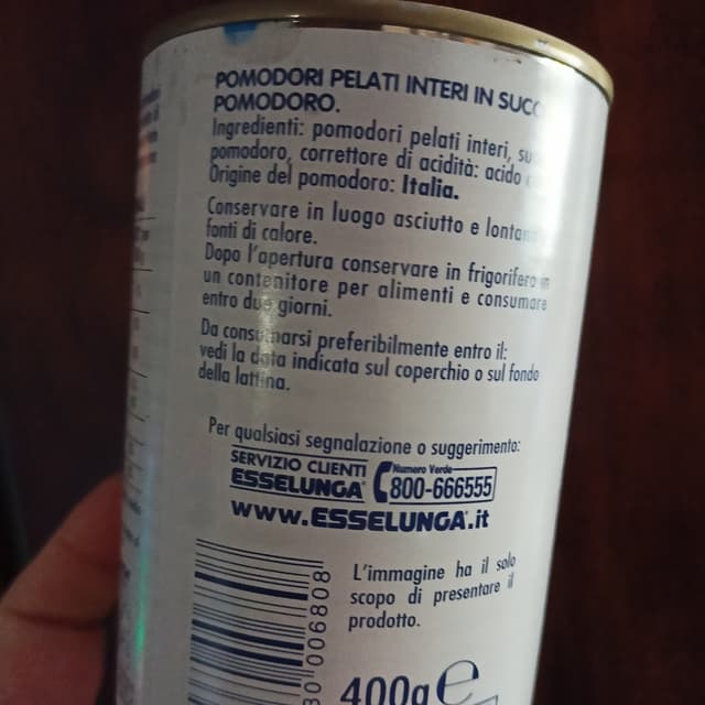 Pomodori pelati dell'esselunga. Sono buoni anche schiacciati con la forchetta e messi sulla pizza 🍕