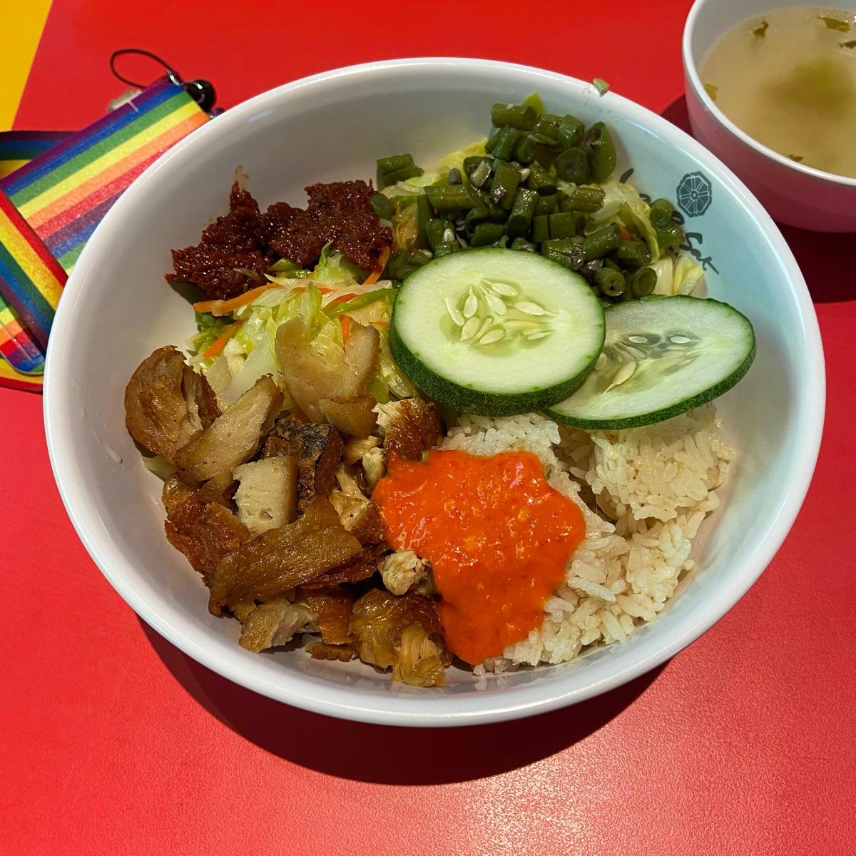 My favourite #chickenrice in the CBD, hands down 🙌 I ate here for dinner last night & I can’t believe I’m actually having lunch here again 😂 Their #veganbowl dishes follow a simply recipe of a base carbohydrate of either plain rice 🍚, brown rice 🌾, biryani, or in this case a chicken rice 🐓 with the same pairing of vegetables for pretty much every dish & just the proteins swapped out! Sure, it can get repetitive if you eat here a lot as I do 😅 but it’s a formula that works and gets you a #balanced meal 🧘♀️ The #veganchicken they used here seems to be #seitan based but I may be incorrect..? It was good #chicken regardless and especially paired with the 2 spreads of #sambal, the darker of which was a S$1 add-on, I had a pretty hearty and #spicy meal last night 😋 No complaints! S$6.90 for the base meal by the way if you’re wondering 😉