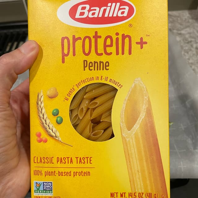 Pasta made from wheat flour, lentil flour, chickpea flour, barley flour and spelt flour. 10 grams of protein per serving. Tastes like pasta - will buy this over and over again. #pasta
