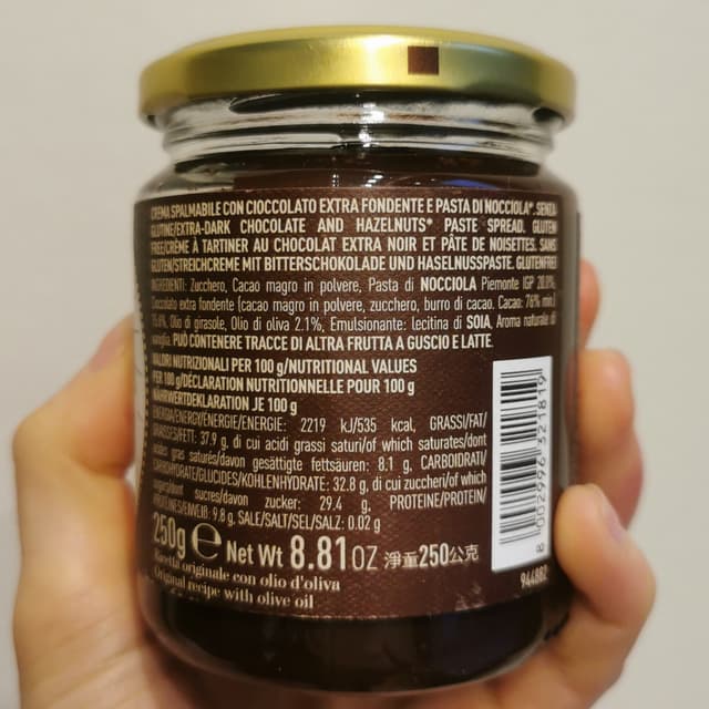 Crema che fa il suo lavoro: è densa, ha un intenso sapore fondente e una lista di ingredienti onesta.