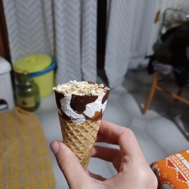 L'unica pecca riguarda la consistenza: appena lo prendi in mano ti rendi conto che il cono è molliccio e quando mangi il gelato ti si sfracella in bocca.