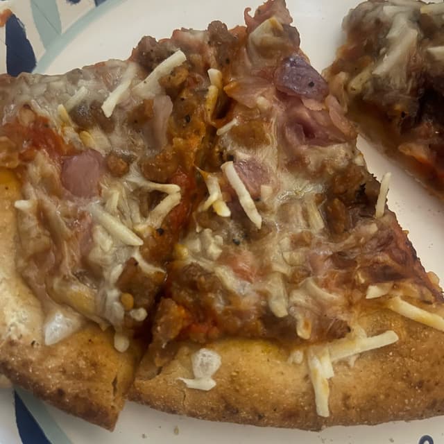 Such a good frozen pizza! It’s filling and the crust gets nice and crunchy in the oven. It’s also relatively affordable. I found mine at Grocery Outlet in California.