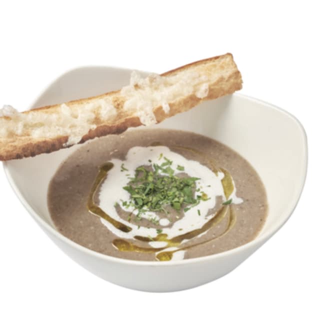 It came with a piece of bread toasted with melted cheese on top that added a crisp bite and was the perfect accompaniment to the creamy soup.