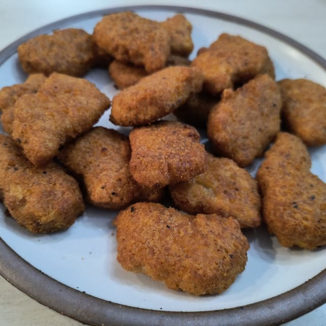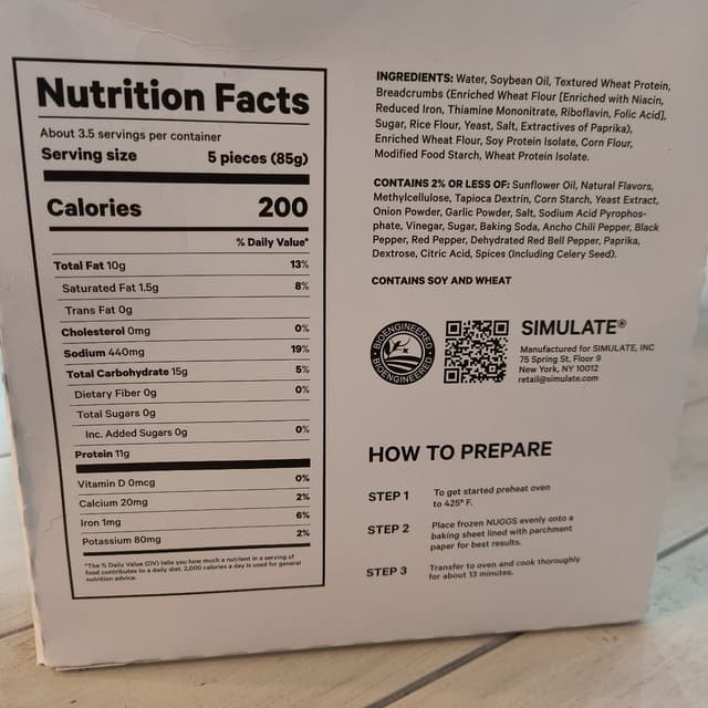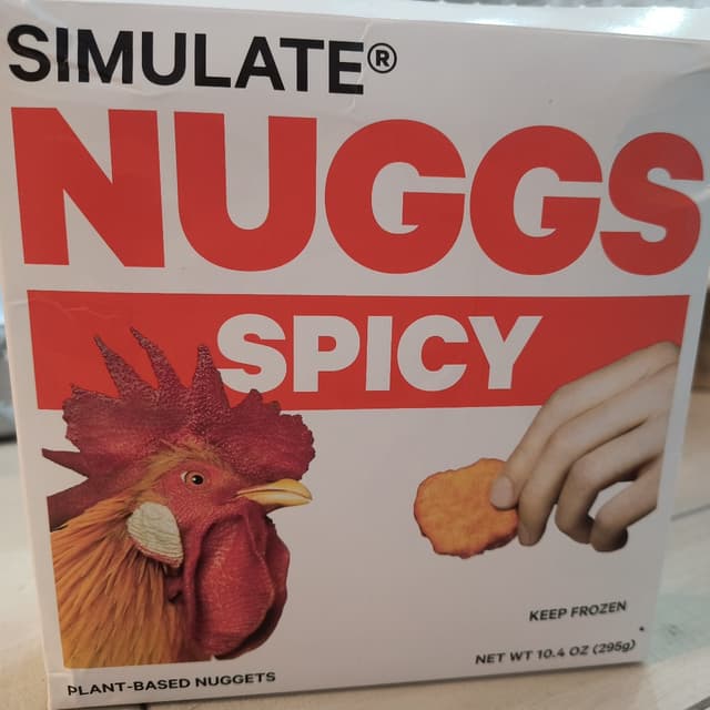 These nuggs are primarily wheat meat. They shrink up a little in the oven, but otherwise the experience was pretty much as expected. They weren't very spicy, but I'm used to very spicy foods.