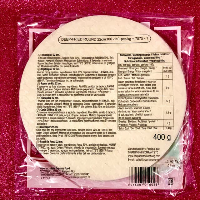 Amatissima nella cucina thailandese e vietnamita, la carta di riso è una sfoglia sottilissima nata in Cina dalla trasformazione della omonima farina, lavorata con acqua, sale e amido di tapioca.