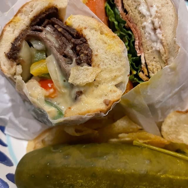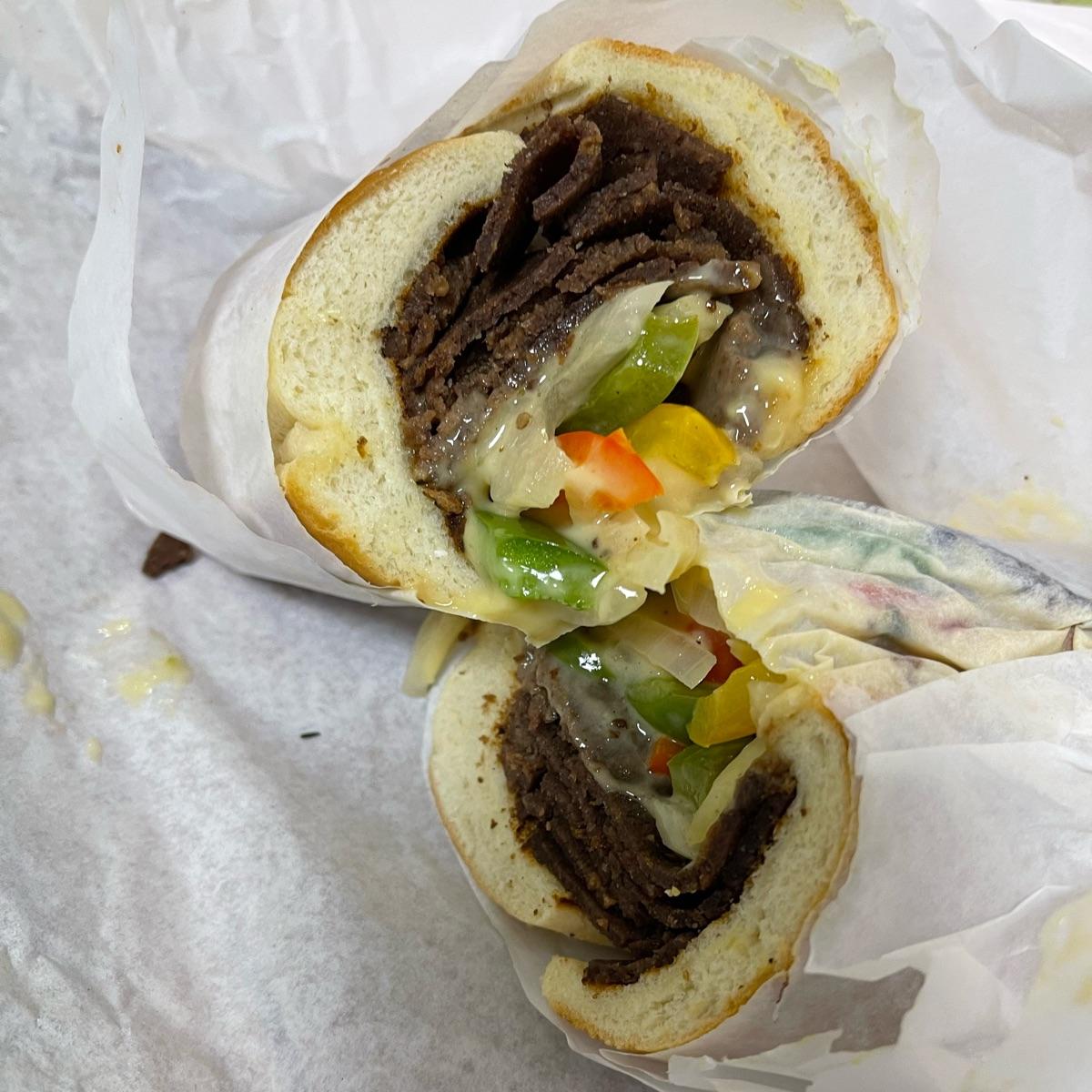 We got several sandwiches to split and try because this restaurant isn’t too far but it’s also not close. This one fell in the middle. It’s a solid mediocre. It has v steak, cheese sauce and grilled peppers and onions on a hoagie roll. Sounds good but the grilled veggies were a little Al dente and the bread was soft but felt like should be a little chewy. It was almost $15 but not very big and just not special.