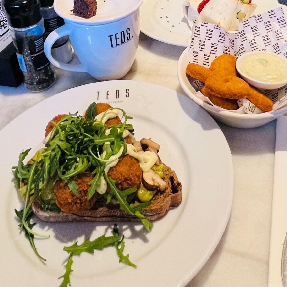 This great vegan take of the Dutch croquet is definitely a recommendation I can make. Avo mash w. Chestnut mushrooms simmered in garlic parsley oil & tarragon mayo drizzled served on sourdough toast.