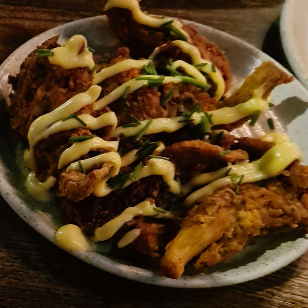 Oyster mushrooms in a crispy coating with safron aioli.. they were tasty but a bit on the chewy side