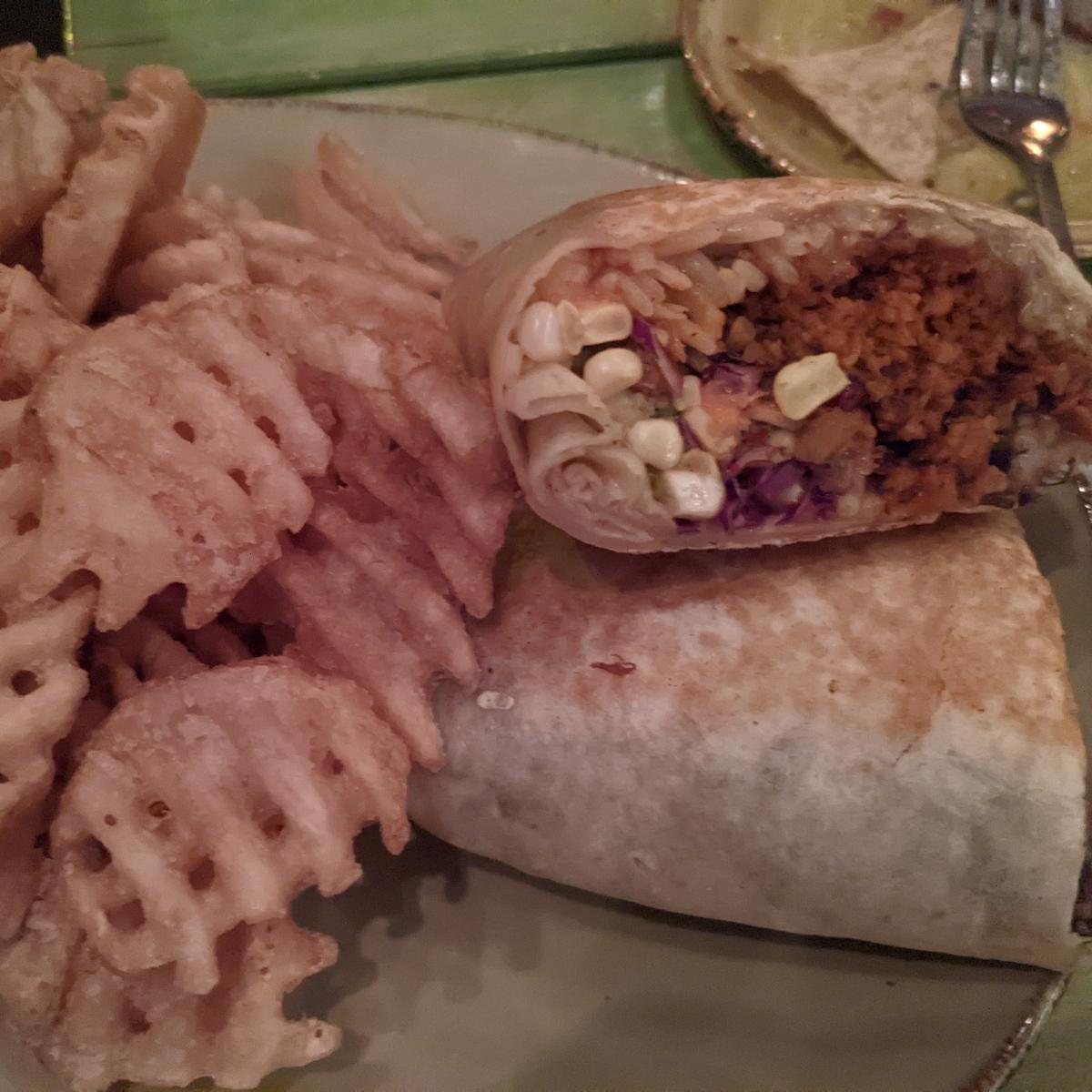 Very flavorful chorizo and the cheese was cheesy and a good proportions the red cabbage really went well with it, also the waffle fries were crispy and delicious.