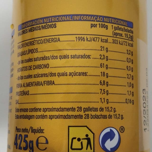 Galletas de avena bastante ricas, aunque con demasiado aceite y azúcar. El precio es de 1,25€.