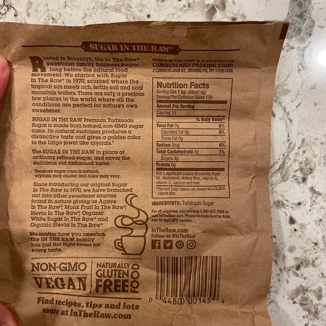 Great cane sugar! We use this in my house for baking, especially to coat gingerbread cookies my brother makes for the holiday season. The brown paper bag packaging makes it seem more simple and ‘natural.’ It is a golden color. Swipe to see more info!