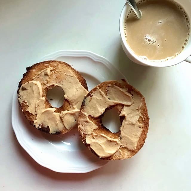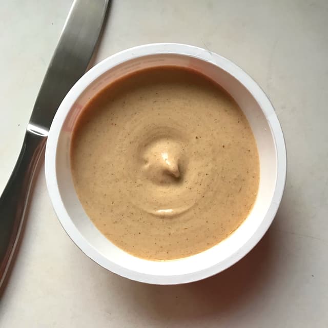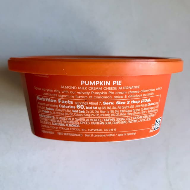 Whoa! I can’t believe that this stuff is made of #almondmilk. I was hardly expecting the luscious, pillowy, whipped texture of this cream cheese; it yielded unresistingly to my butter knife and spread smoothly, like an absolute dream. As with other Kite Hill products, it’s ever-so-slightly sour (due to the fermentation); I think I noticed this aspect more because it was my first time trying one of their sweet products, though it by no means detracted from my experience. It’s truly incredible — somehow this spread really does taste like warmly spiced #pumpkin pie filling; it made my (accidentally scorched) bagel taste just like dessert. Despite the indulgent experience, it’s not nutritionally horrible, either! And the best part? It was a cool $0.99 at Grocery Outlet.