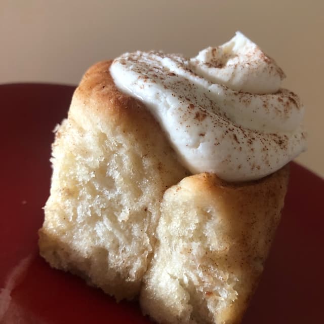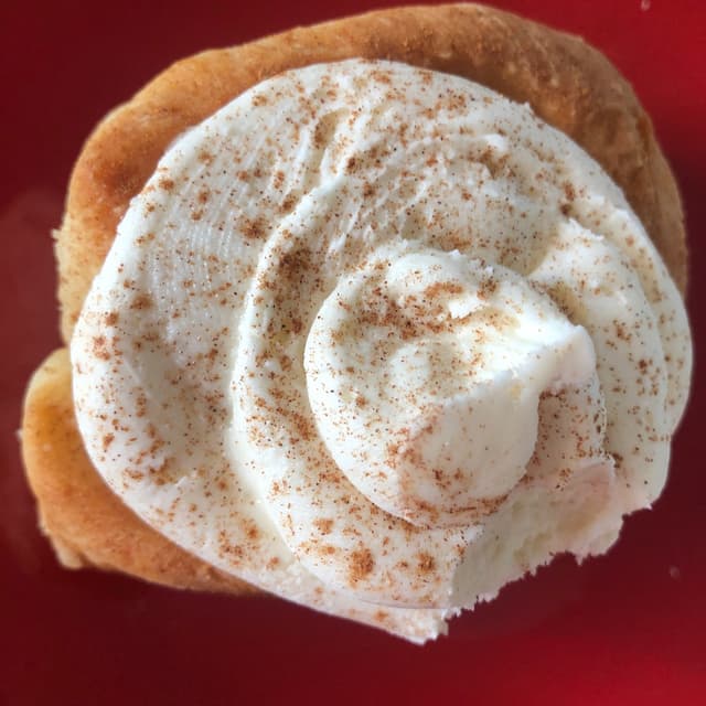 YUM! Treat yourself to this giant roll of goodness. The icing is sweet but not overly sweet. Huge portion, reheats well at home.