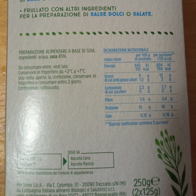Davvero un ottimo tofu. All'interno è diviso in due panetti da 125g. Ottimo per ricette sia dolci che salate