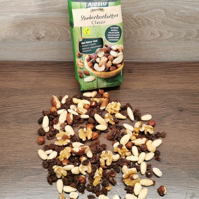 AlestoStudentenfutter ClassicEin leckerer Nussmix, welcher zu einem großen Teil aus Sultaninen besteht.