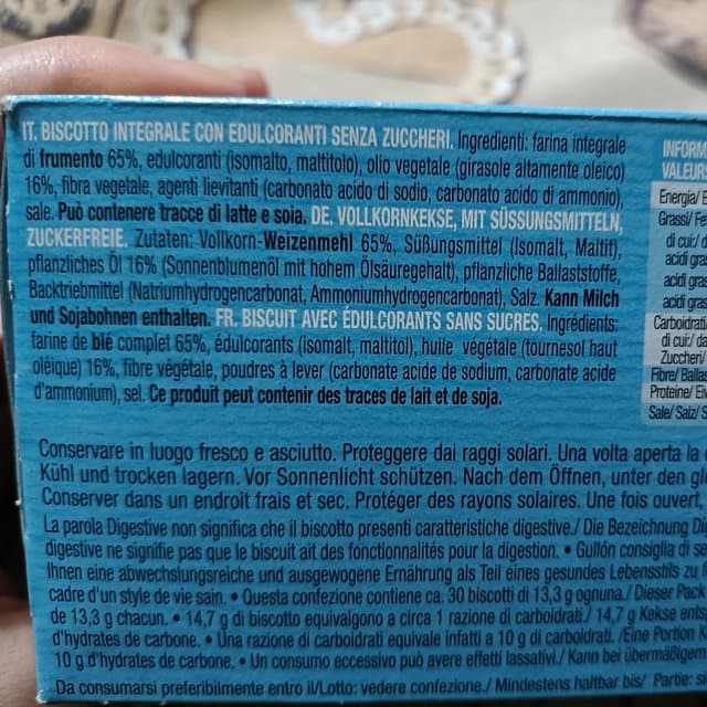 Biscotti molto validi! Sono integrali, senza zuccheri (con malto), dal sapore gradevole, croccanti, hanno solo olio di girasole e una lista ingredienti buona e breve. Ottimo rapporto qualità prezzo.