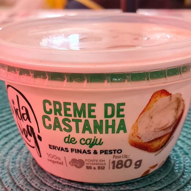 Creme fermentado de castanha de caju com ervas finas e pesto, deliciosamente cremoso e saboroso! Amei!