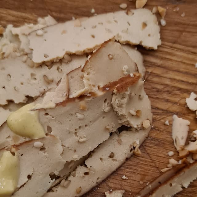 What a fantastic smoked tofu - it simply became my favourite! The texture and taste are both fantastic. I'll try to always have it at home: sliced very thinly, with some mustard on a piece of bread? Wonderful.