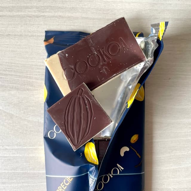 Bastante diferente dos outros chocolates veganos, este não tenta ser tão doce como as alternativas, e ainda assim consegue ser bem saboroso.