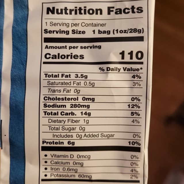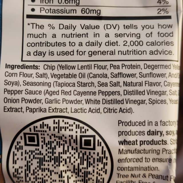 Baked lentil chips with a good amount of protein. The spicy ranch flavor tasted ok, but didn't really feel like a ranch, and it wasn't that spicy lol. Not my favorite chips, I probably won't get these again simply due to the taste being subpar. Nutritionally they're not bad though.