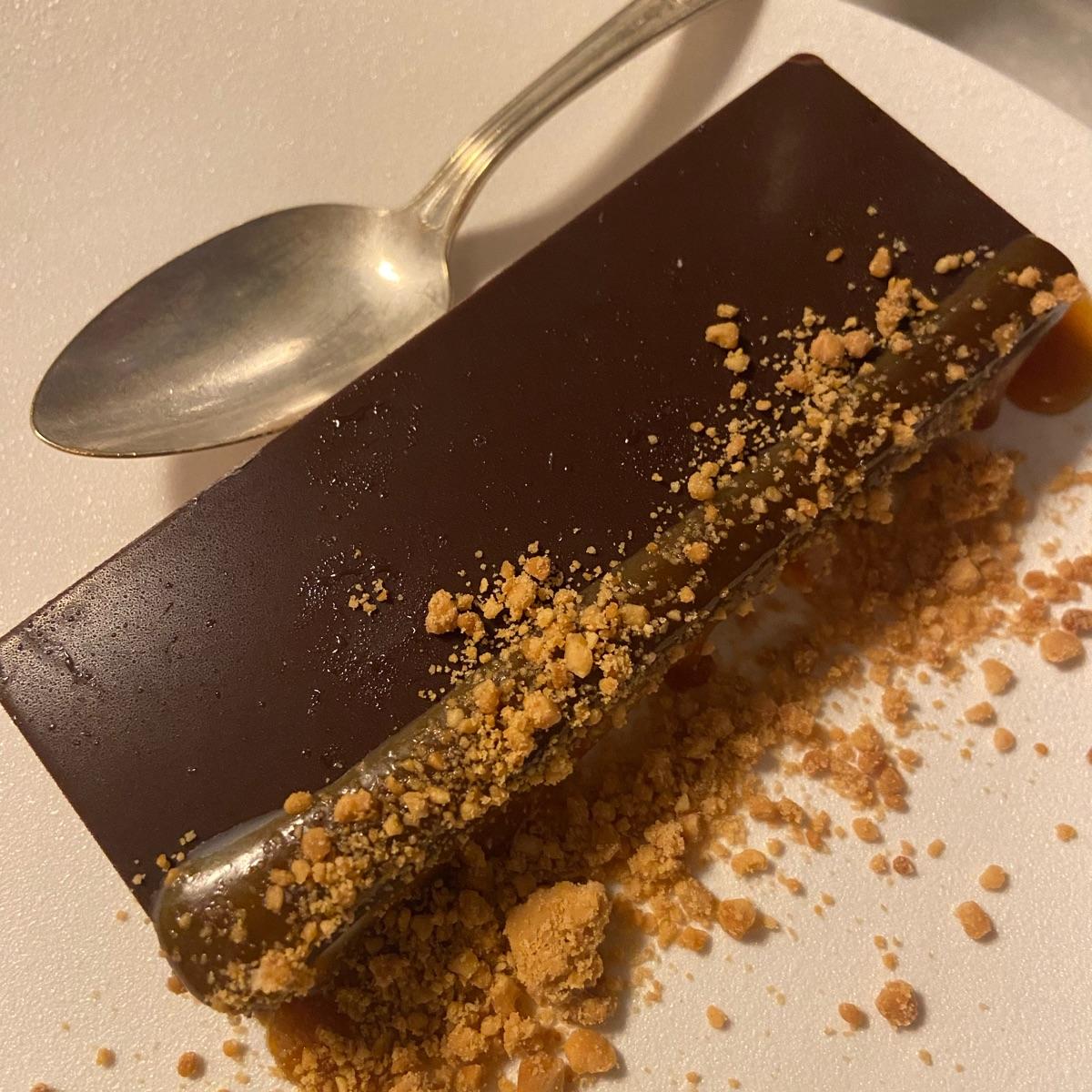 Molto buono questo dolce! L’unica appunto, probabilmente l’hanno tirato fuori un po’ tardi dal frigorifero e la mattonella di cioccolato sopra risultava un po’ dura da spezzare con il cucchiaino, ma era molto buona!