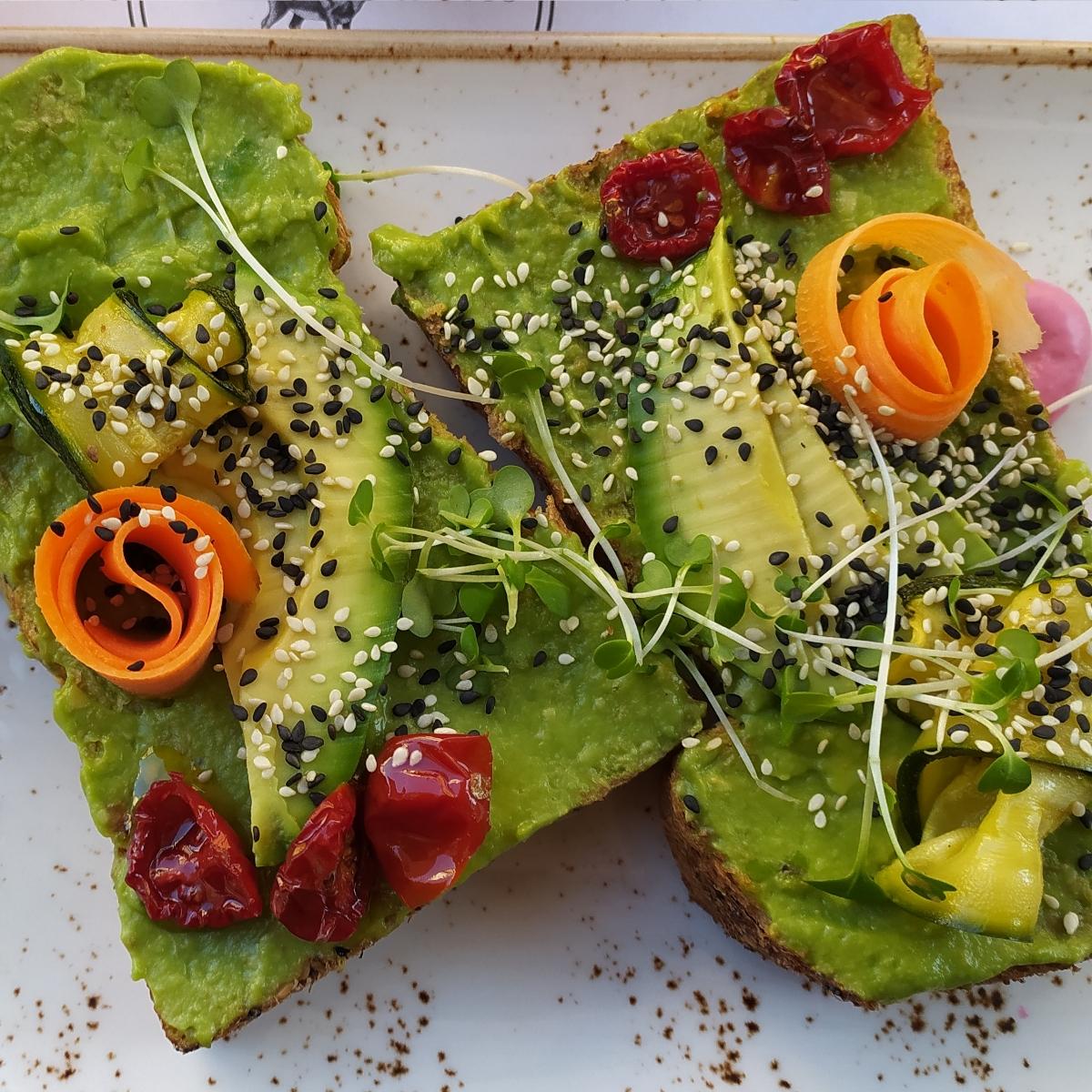 Avocado toast con verdure, semi e germogli.Gusto delicato. Ideale per un pranzo veloce!