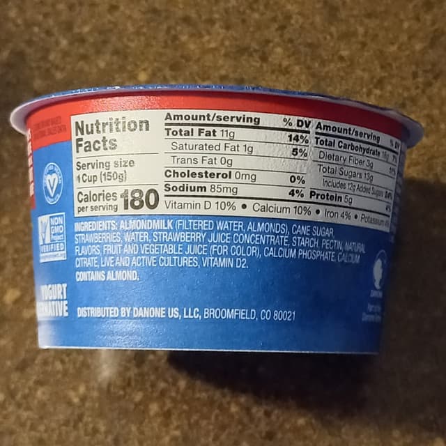 Introducing our strawberry almondmilk yogurt alternative, made with non-GMO ingredients and free from carrageenan. This vegan yogurt is a great option for those looking to ditch dairy, with 15g of protein per serving making it a satisfying snack or breakfast choice. The strawberry flavor is sure to please, with tiny pieces of strawberries adding a refreshing twist to every bite. Look no further for a tasty and nutritious alternative to traditional yogurt. Try it today and see for yourself why it's a popular choice among consumers.