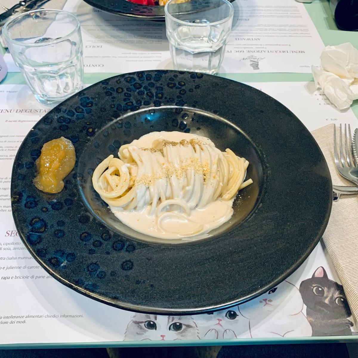Molto buoni, la nota del bergamotto e la composta di pere rendevano il piatto molto particolare!#veganroma #govegan