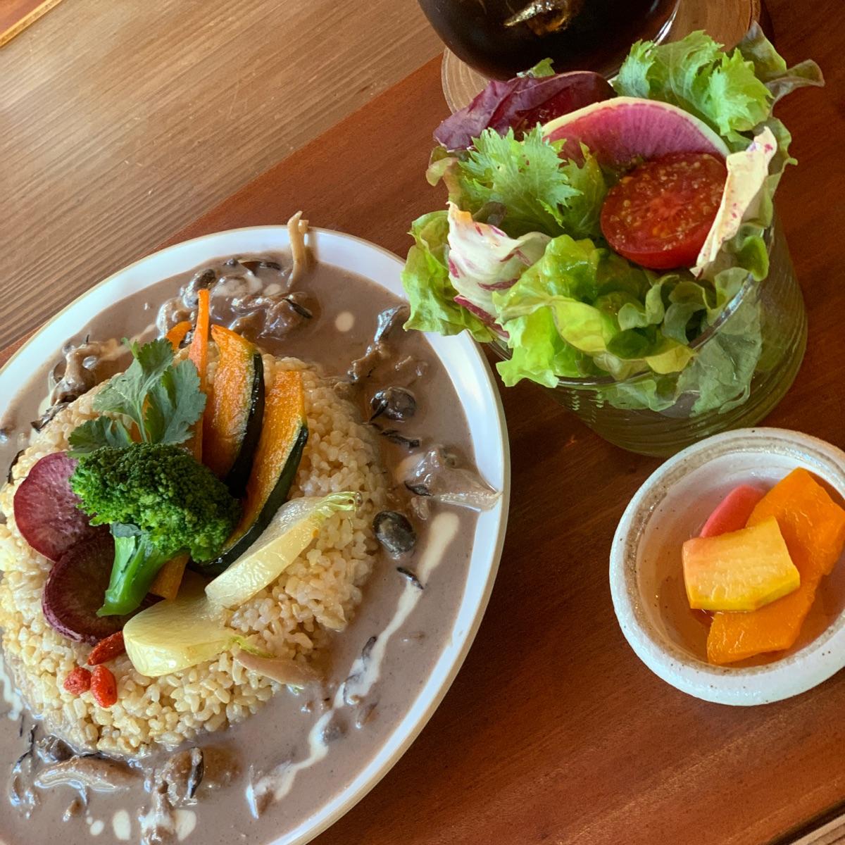 千葉県の割と田舎にある薬膳カフェ❗️すごく美味しいカレーだった🍛黒色の食材がふんだんに使われてた変わったカレー♪