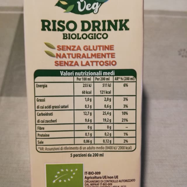 Bevanda di riso con riso biologico. Senza aggiunta di calcio o vitamine.