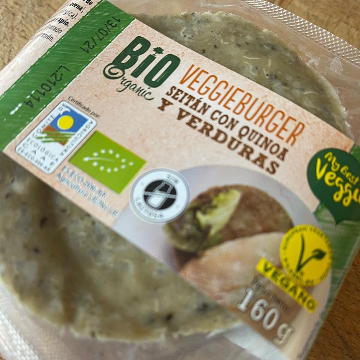 Veggie Burguer fresca de seitan con quinoa y verduras. Bastante buena. Ingredientes de calidad y ecologicos