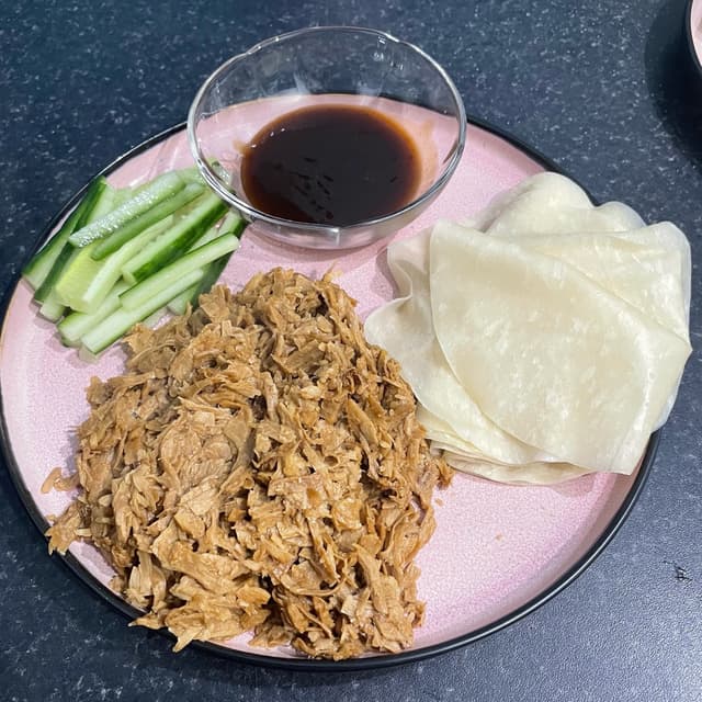 The texture of the no-duck was meaty and a little chewy but not tough or overly difficult to eat. The wraps for soft, very thin, and easy to to eat.