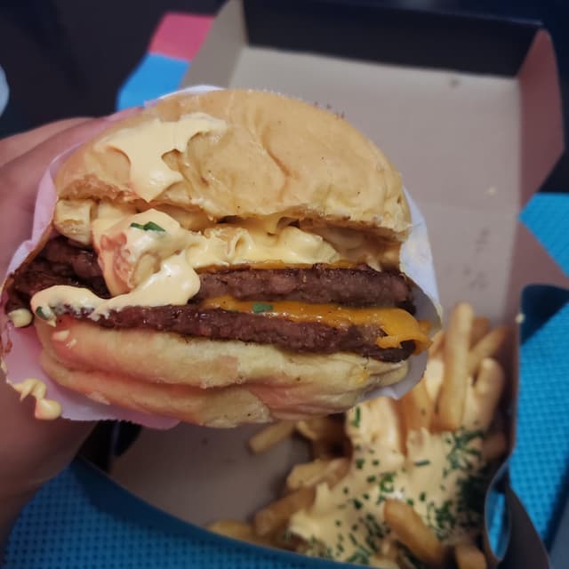 A ver, el sabor de las papas con cheddar, es orgasmico, son adictivas 🍟 (ojo, punto en contra si llega frio es una cagada, me paso una vez, dale golpe de horno y safa)