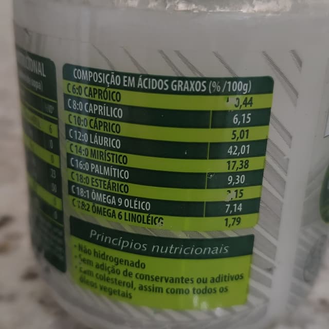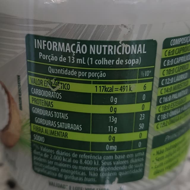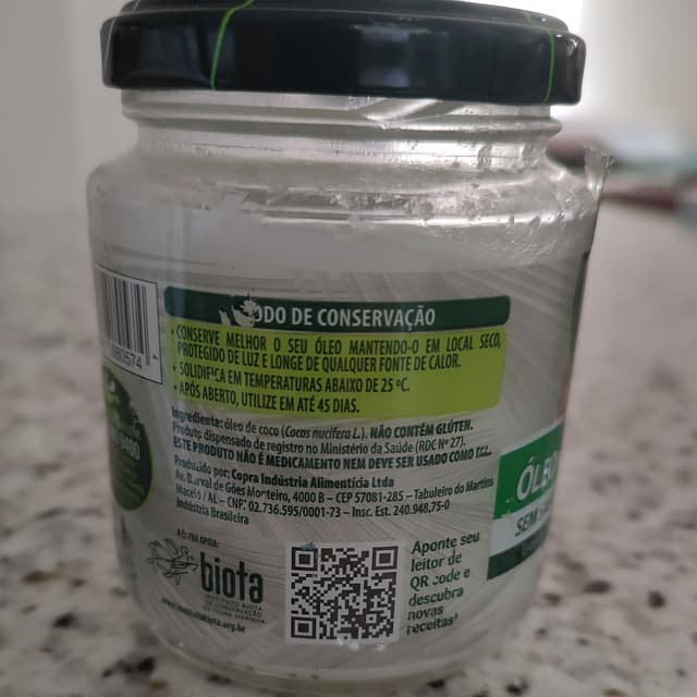 Óleo de côco extraído da polpa do côco, sem sabor/ cheiro, não hidrogenado, sem adição de conservantes ou aditivos, sem colesterol e sem glúten. Pode ser usado pra culinária tanto em pratos salgados como doces, e como cosmético, aplicando na pele e cabelos.
