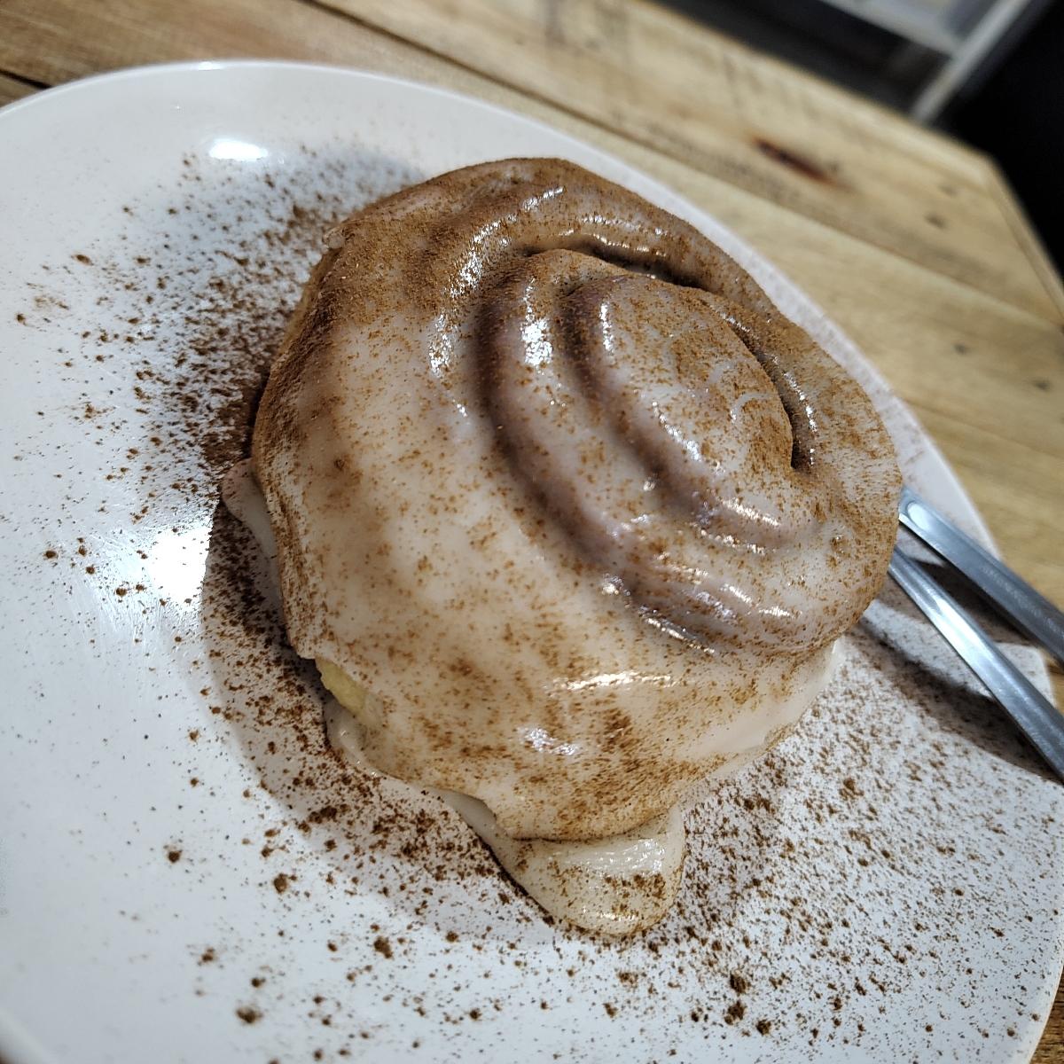 El roll de canela era una fiesta. Por fuera tenía bastante glaseado espolvoreado con canela, y por dentro suave y esponjoso. Sin dudar volvería a comprarlo.