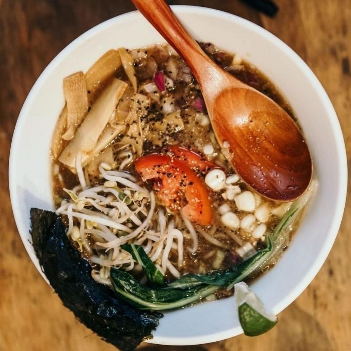 dice el menú que es como el "ramen básico", "ideal para probar". y confirmo. el caldo es de hongos y sabe delicioso, muy completo. no hay que agregarle nada (aunque se pueda), la temperatura justa, balance precioso de los ingredientes...