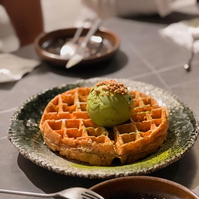 This time the texture of the insides was dense and spongy like huat kueh whoops. Nice cinnamon flavour & slightly crispy waffle exterior through! $14.90++ with one scoop of oatmilk or matcha no.1 gelato.