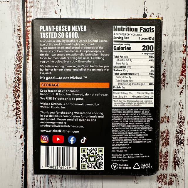 Woweeee 🤯🍦! The 2nd product I’m trying from Wicked Kitchen and I am truly impressed!! Chocolate 🍫 and Red Berry 🍓Cones🍦! Who can go wrong with those 2 flavors! The Ice cream 🍦 is melt in your mouth good, sweet tangy red berry 🍓sauce #berrylover and chocolate 🍫 chips for that little bit of a crunch! Cone is nice and crispy and not mushy like most other brands I’ve tried! I will definitely 👍🏼 get these again!