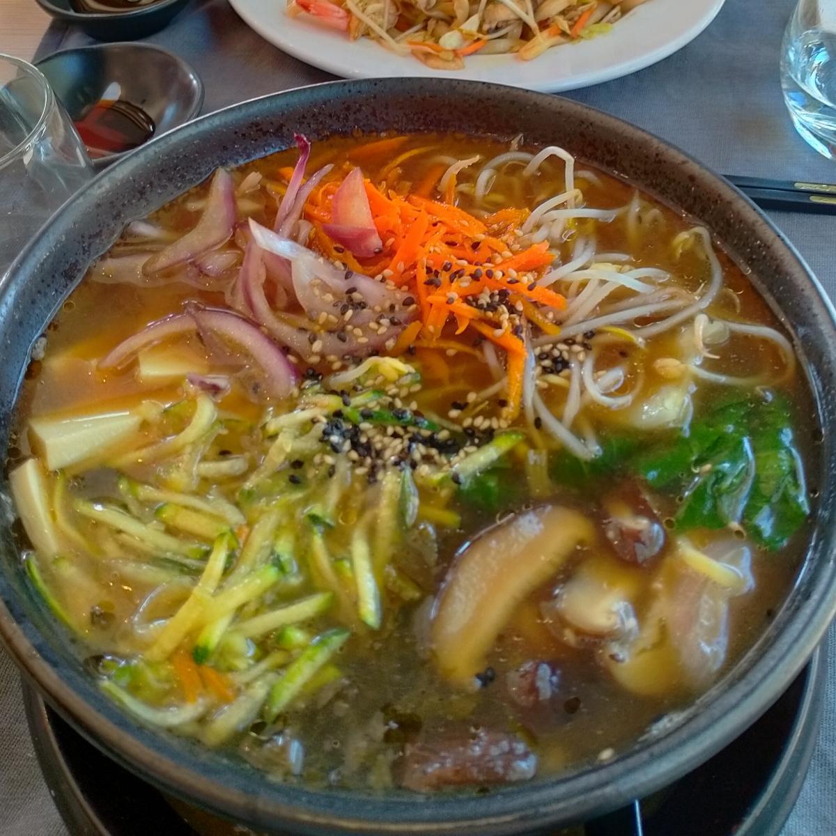 Piatto unico, brodo e ingredienti abbondanti. Verdure, funghi shiitake, germogli di soia, brodo di verdure. Ho chiesto l aggiunta di tofu e non mi hanno fatto pagare un extra