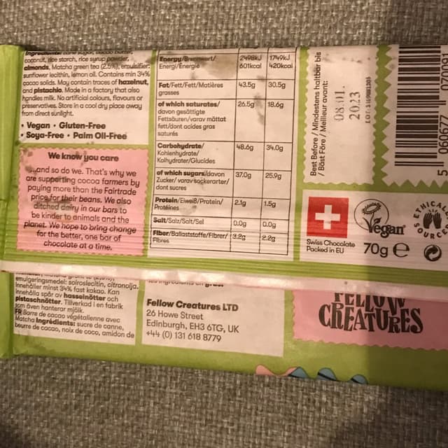 Interesting white chocolate matcha novelty bar. Has an erbal taste that complements the white chocolate. Fun to try if you like white chocolate, a bit like Milky Way. #ditchdairy