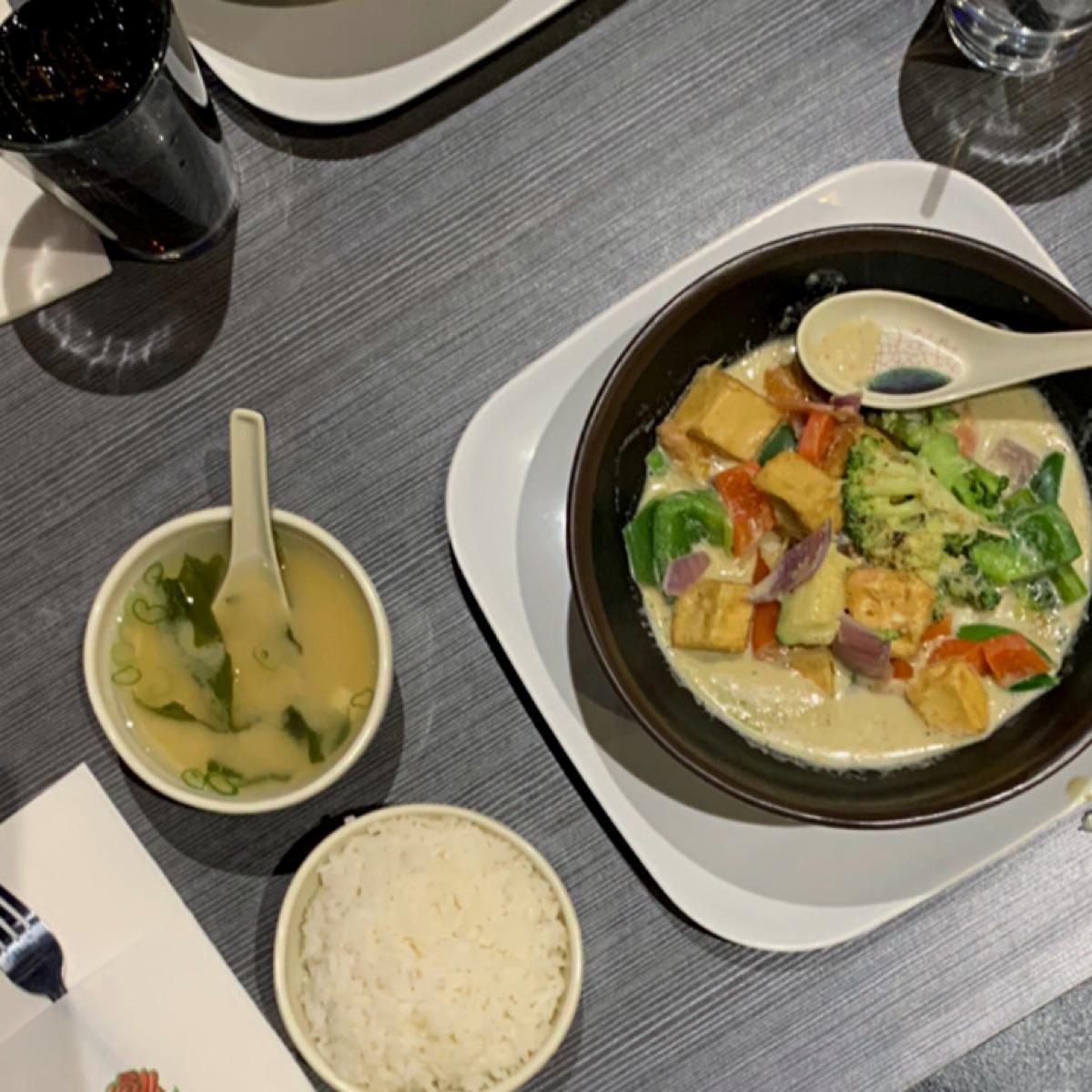 This green curry made with coconut milk & tofu is a 10/10!! Would highly recommend 🥹🤍