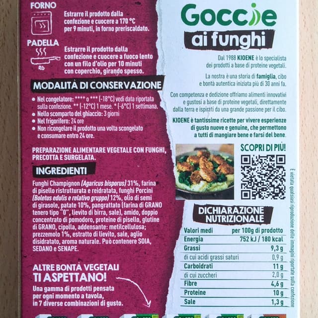 Nuovo prodotto di Kioene. Sono delle piccole gocce fatte con ingredienti semplici ma allo stesso tempo sorprendentemente gustosi. Si sentono bene i funghi porcini e non ci sono spezie ma prezzemolo, cipolla e aglio.