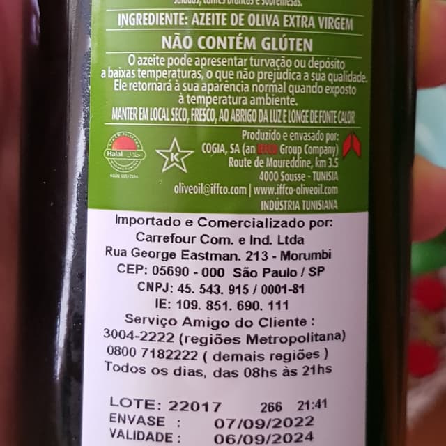 Muito agradável o sabor desse azeite importado da Tunísia e comercializado pelo Carrefour. Utilizei no molho vinagrete e achei bem suave. Vem com bico dosador.