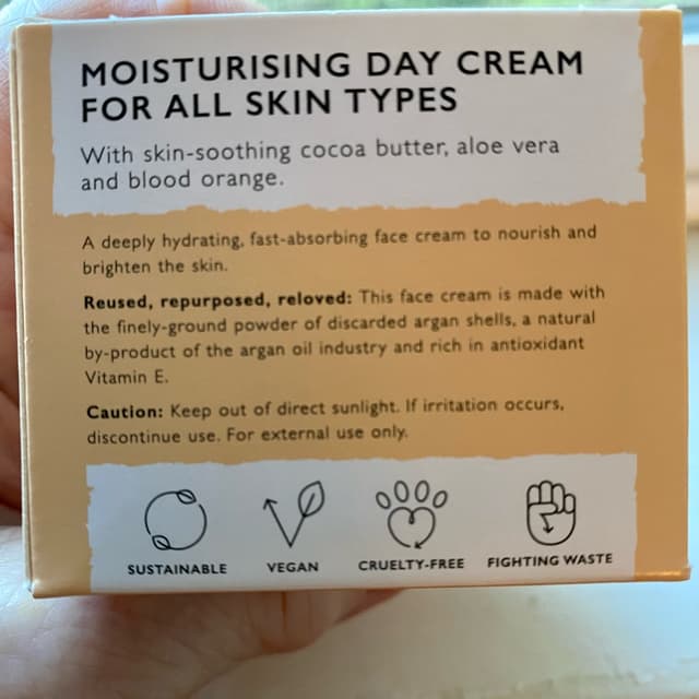 I love this moisturizer, which I get from the Zero Waste Store. It’s thick, but absorbs well and is very moisturizing. Some reviews I’ve read complain about the scent, but I don’t mind it and it fades quickly. Highly recommend.