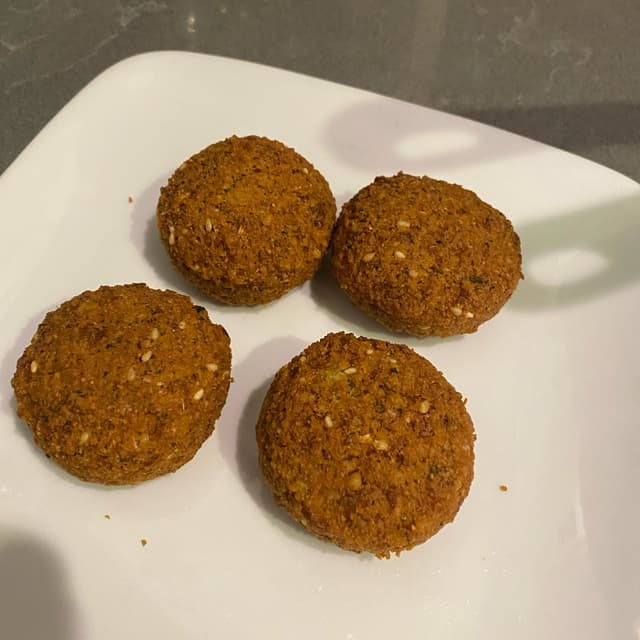 These are the best frozen prepared falafels I’ve had. Crispy if baked for 10 minutes from frozen. I like them crumbled into a salad, but forgot to take that pic.