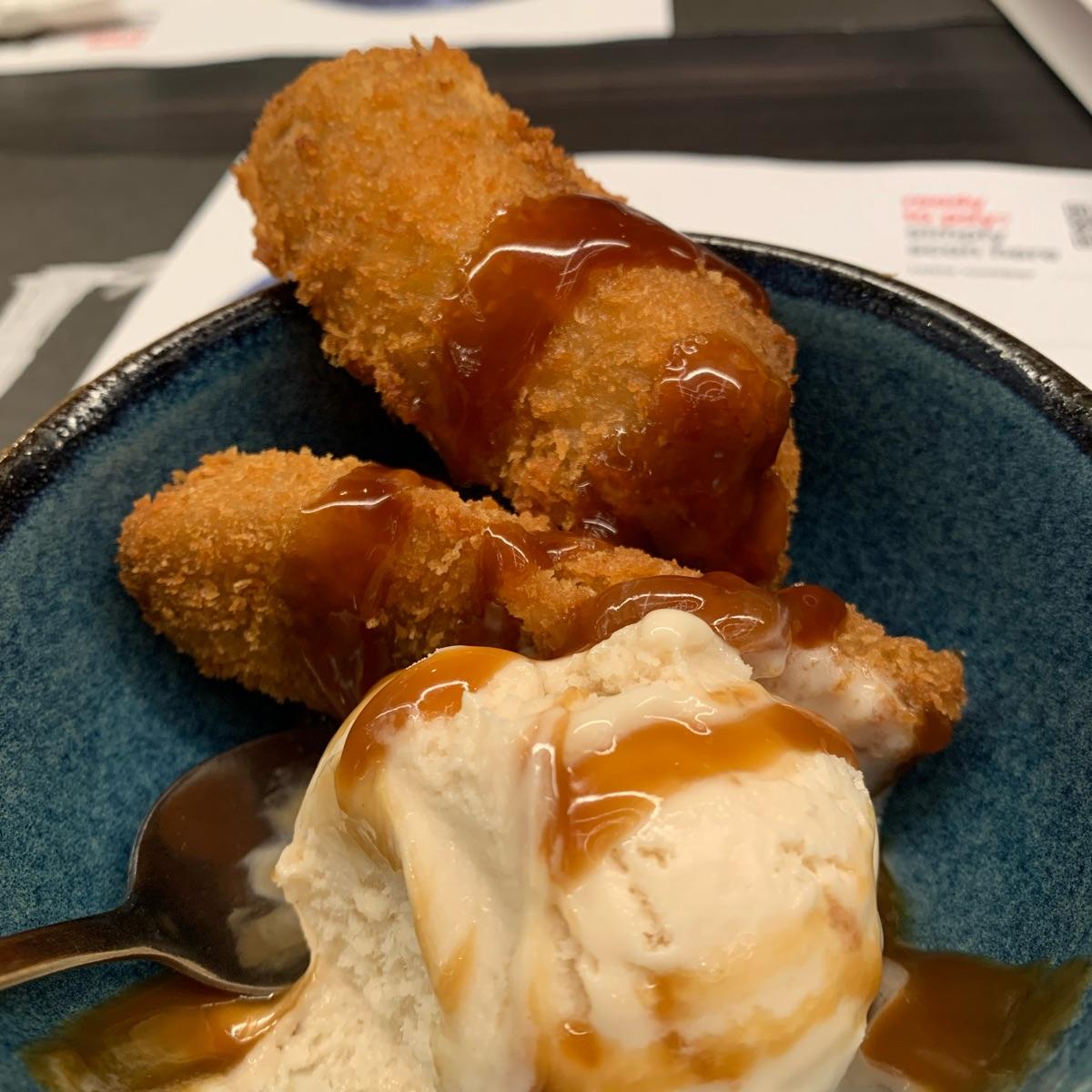 Wow this is a delicious dessert, banana encased in panko breadcrumbs with ice cream and caramel sauce. You cannot tell it’s dairy free! Well done Wagamama you deliver again!! #banana #dessert