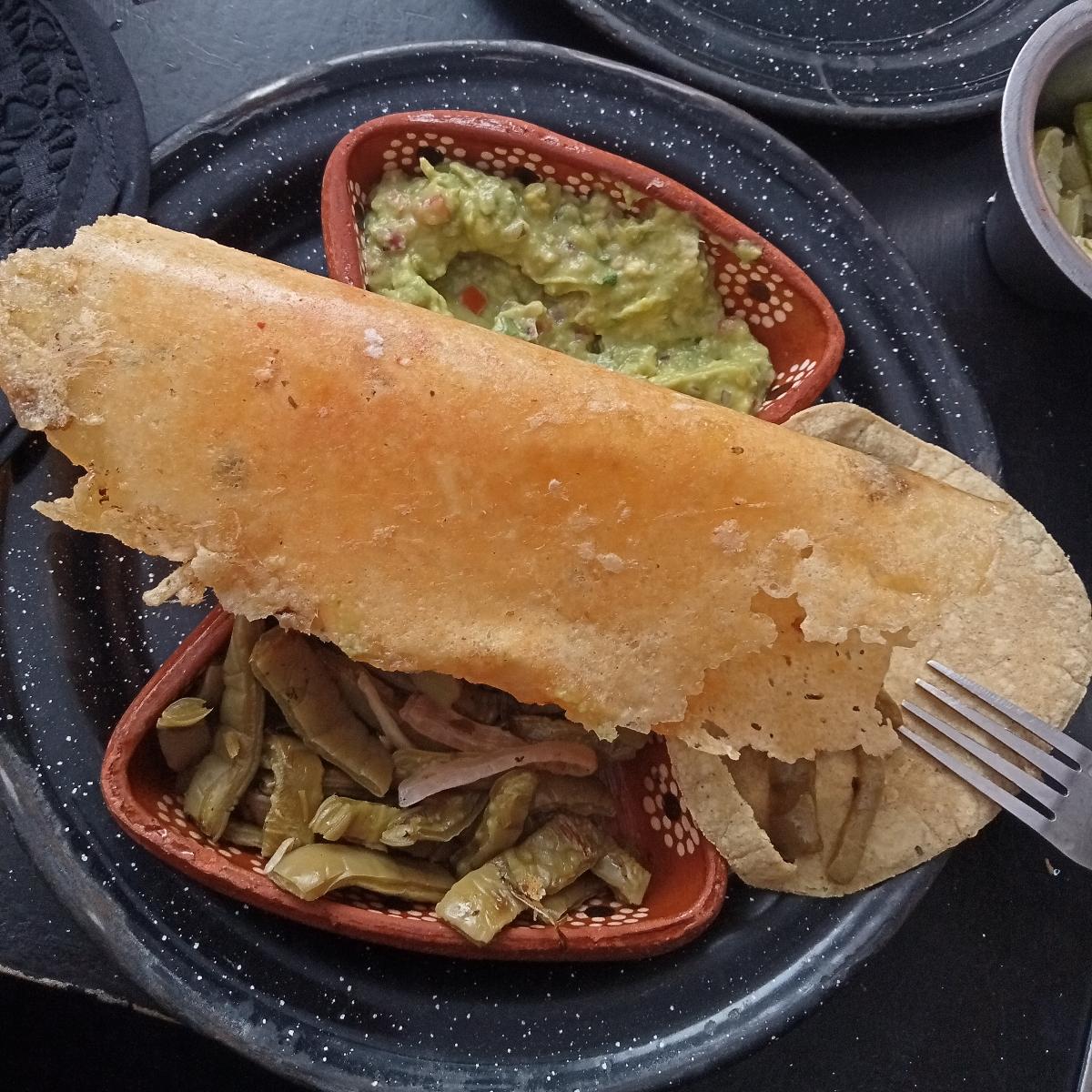 Este es sin duda mi platillo favorito del lugar 😋 Me encanta! Costra de queso deliciosa, servida con nopales asados y un guacamole cremoso riquísimo y con tortillas para hacerte tus taquitos 😋😊💚